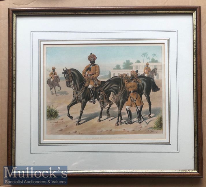 India - Original colour lithograph of the 1st Bengal cavalry review order c1900s by R Simkin. In original frame. Dimensions 42 x 36 cm