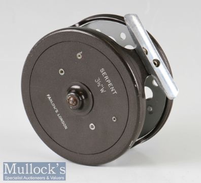 Farlow’s London Serpent 3 ½” Wide Drum Alloy Fly Reel with double line guide^ constant check shows some signs of use^ runs well.