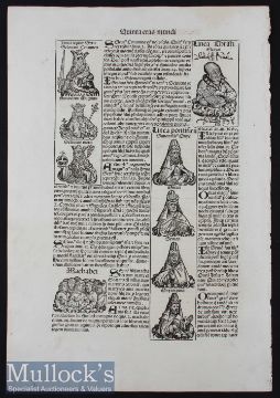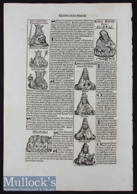 1493 Germany - Single Leaf From The Nuremburg Chronicle - This is fine leaf from the original larger Latin version of the Liber Chronicarum^ printed in 1493 five months before the German edition. The illustrations are finely began by Michael Wolgemut in 1487 with William Pleyenwurff his son^ with the designs of the woodcuts. Also some work was done by the young Albrecht Durer when apprenticed there. It was printed in Nuremburg by Anton Koberger^ Large size of 12½” × 18¼” (320mm × 465mm).