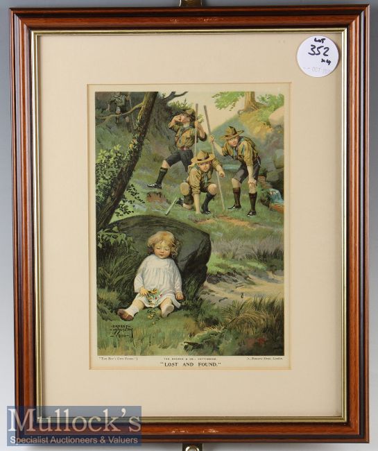 4x Boy Scout Prints entitled ‘The Scouting Trail’^ ‘The Capture of Windsor Castle’ Punch 1936^ ‘The Patrol Leader’^ ‘Lost and Found’ measures 33x40cm