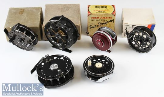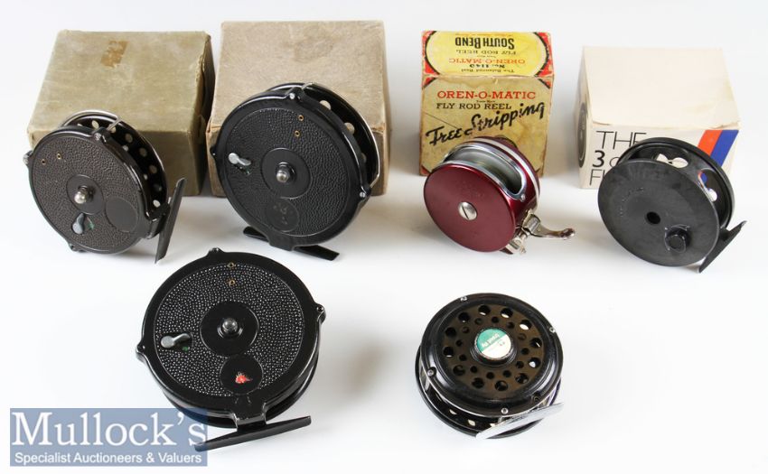 Mixed Vintage Reel Selection (6) including South Bend Open-o-Matic 1140 reel^ Sundridge Skorpio reel^ both in maker’s boxes^ Winfield trout fly^ with 3 other black finished twin handled centrepin reels^