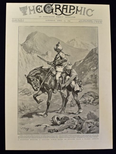 India - India's Loyalty print 1916 drawn by Lionel Edwards and 1899 A Frontier Episode: A Gallant Sowar saves an Officer from a Waziri Ambush engraving measures 28x40cm (2)