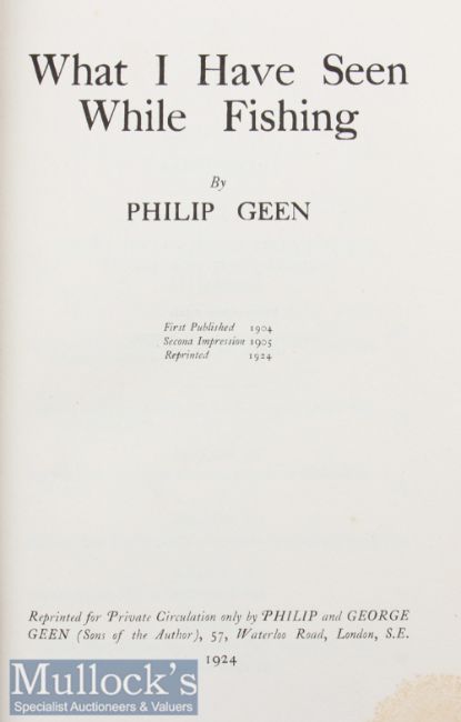 Geen^ Philip – What I Have Seen While Fishing^ 1924 with original binding.