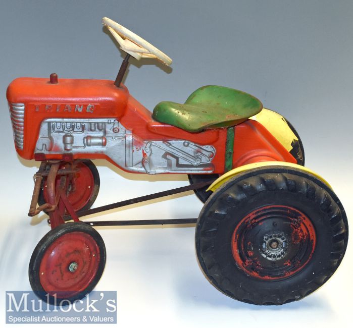 Vintage 1960s Triang Child’s Pedal Tractor measures 75x50cm approx. broken rear fender^ signs of us apparent together with a Triang Scooter three wheeler measures 65cm in length^ signs of use (2)