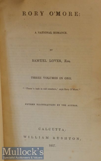 Rory O’More – A National Romance Book [Pirated Calcutta edition of 1837] By Samuel Lover Three volumes in one 15 illustrations by the author^ Calcutta: William Rushton 1837 Original period binding^ wear to covers^ internally clean