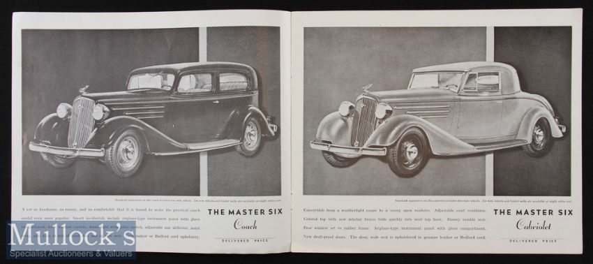 Chevrolet Automobile Catalogue 1934 Sales Catalogue A 12 page catalogue illustrating and detailing their 9 Models of this impressive car ranging from Sedan to stylish sports Cabriolet. Printed on fine semi-gloss paper with illustrated front cover. Size 9¾” × 8¼”.