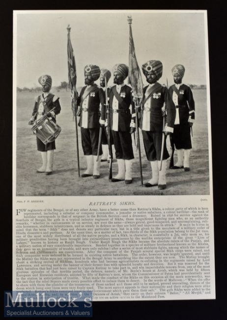 India & Punjab - Rattrays Sikhs photographic illustration depicts a colour party of the 45th Sikhs with text information below relating to the history including the defence of Boyle House at Arrah^ from a military journal 31x21cm^ laid to card