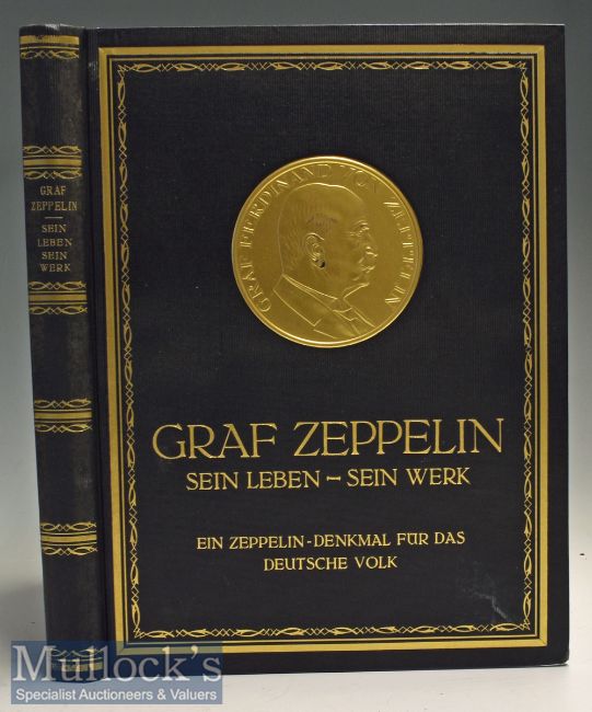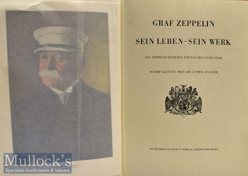Zeppelin - Denkmal^ fur das Deutsche Volk’ Prof Dr Ludwig Fischer^ ND - A very imposing large Book of XII and 388 pages with some 280 illustrations of Zeppelins and people involved. Giving a fulsome account regarding development of Zeppelins to that date including construction and flight to America in 1924 of the Los Angeles^ also includes a biography of Graf Ferdinand von Zeppelin; his early life and later work^ a tribute to the man and his work. Printed on finest thick semi-gloss paper in blue cloth board cover with impressive gold embossed Medallion on front cover^ size 11” × 14” (280mm × 355mm).