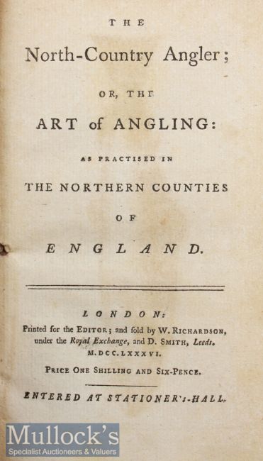 The North Country Angler or the Art of Angling as Practised in the North of England – published London 1786^ 1st edition^ frontis plate of a trout^ early half green calf binding^ some light browning to frontis and title page.