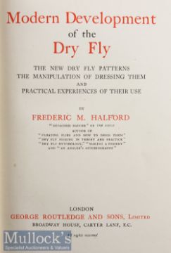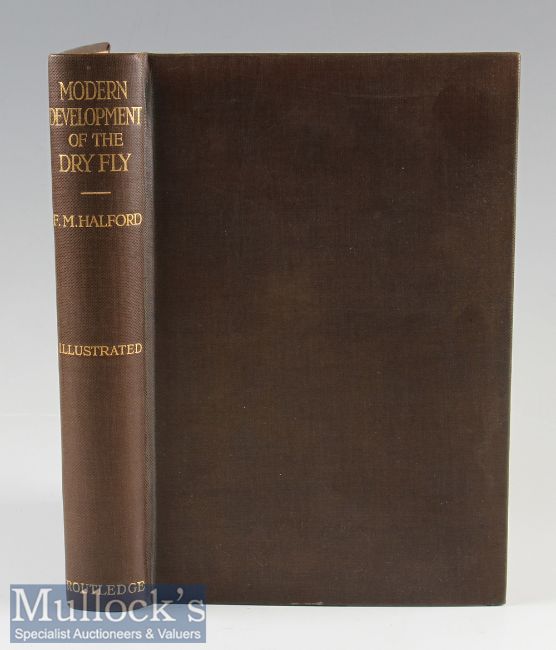 Halford^ F M – Modern Development of the Dry Fly^ 1923^ reset of 1st edition^ frontis^ colour plates and photos^ fine example in original brown cloth binding.