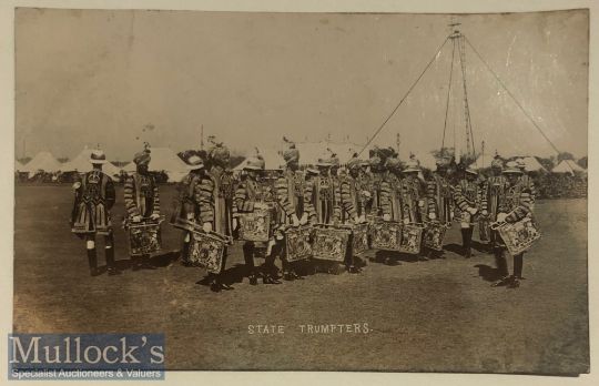 India - Original real photo postcard Delhi durbar India showing Sikh Patiala state trumpeters c1900s