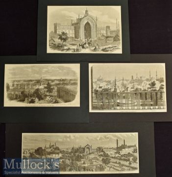 India – Lucknow – 4x 19th Century Original engravings of Lucknow 1857/58 including The City 35x12cm^ Roomee Durwaga Gate 23x16cm^ View from the Residency 24x15cm and View from the Observatory 32x13cm displayed on card (4)