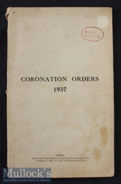 Royalty – Coronation Orders 1937 Booklet date 12 May coronation of their majesties King George VI and Queen Elizabeth Headquarters London District^ 30 April 1937^ rusted staples^ o/w in A/G condition overall