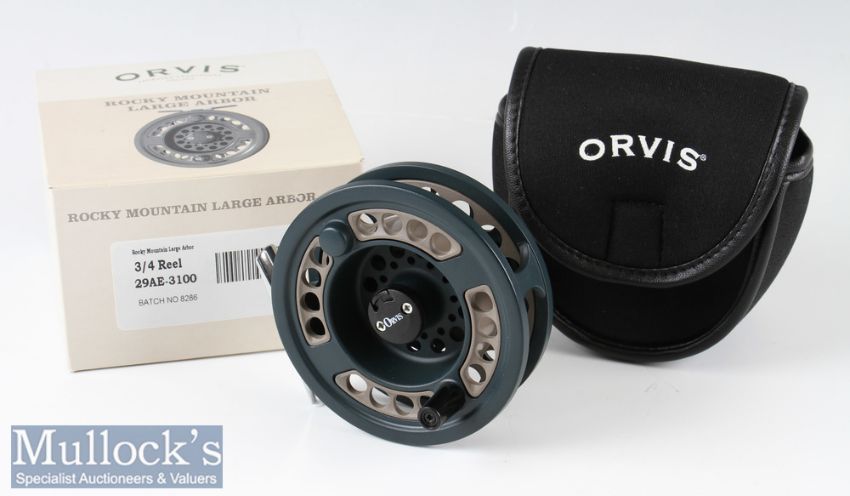 Orvis Rocky Mountain Fly Reel large Arbor II 3/4 in green finish with rear tensioner^ in maker’s box with padded case^ good example.