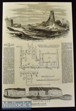 India - Buddhist Rock-Cut Temple^ Ajunta 1876 original engraving with text information to reverse^ 32x23cm and The Ancient and Ruined City of Brahmunabad in Sind original full page with illustrations and text Feb 1857 37x25cm (2)