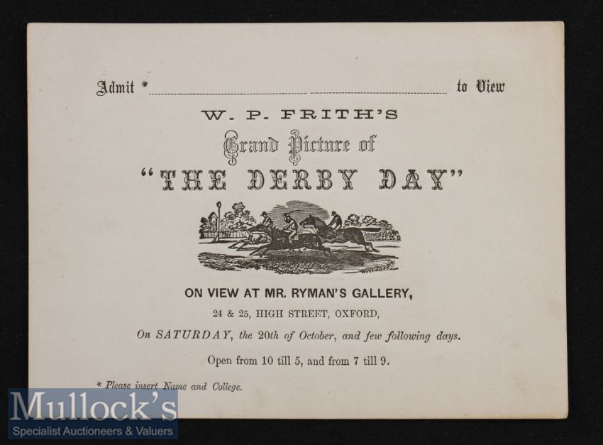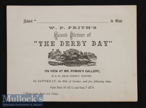 Admission Ticket – to see W P Frith’s Grand Picture of The Derby Day – on view at Mr Ryman’s Gallery 24 & 25 High Street Oxford