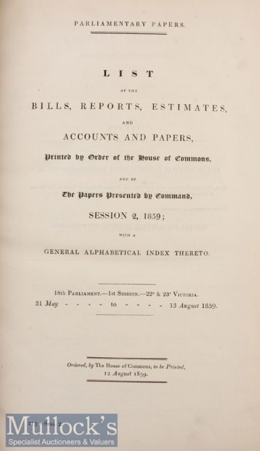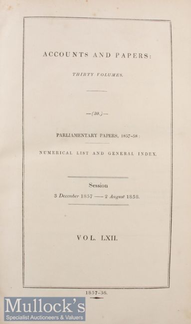 United Kingdom – Parliamentary Papers 1857-58 a general index of all government papers published between 3 Dec 57 and 2 Aug 58 in numerical and alphabetical order^ giving brief description of each^ both half calf and marbled boards (2)