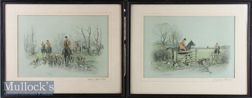 Pair of J.S. Sanderson Wills Hunting Prints entitled ‘After a Good Day’ and ‘Bringing them on’^ both framed 48x38cm approx. (2)