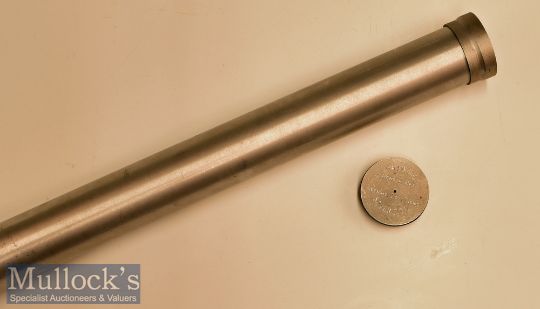 Hardy’s Sovereign Alloy Rod Tube engraved lid ‘Hardy’s Sovereign Length 8ft Weight 2oz 71 gms’ with screw top^ measures 53.5in