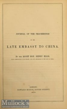 China - Journal of The Proceedings Of The Late Embassy to China by The Right Hon. Henry Ellis^ 1850 a 128 page book detailing this British diplomatic mission^ also extensively describing^ China at the time^ the Grand Canal^ the Cities^ trade and commerce^ Emperor and Court Life etc. In later marble boards and leather spine^ size 5¼” x 9½”.