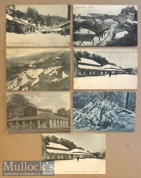 Collection of (14) printed postcards of Ranikhet^ India c1900s. Set includes views of the mall and market^ married quarters^ transport line^ regimental bazaar^ barracks^ post office plus others.