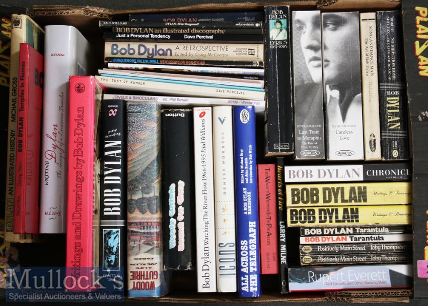 Selection of Bob Dylan Books to include Writings and Drawings by Bob Dylan^ An Illustrated History^ Temples In Flames^ Diary of a Cricket Season^ Bob Dylan A Retrospective^ All Across The Telegraph^ Watching The River^ Song and Dance Man The Art of Bob Dylan^ An Illustrated discography and many more^ HB and SB included^ mixed condition A/G (#40) Box