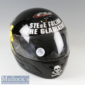 FM Motorcycle Full Face Helmet with applied stickers Steve Fallon ‘The Gladiator’ and helmet stickers.