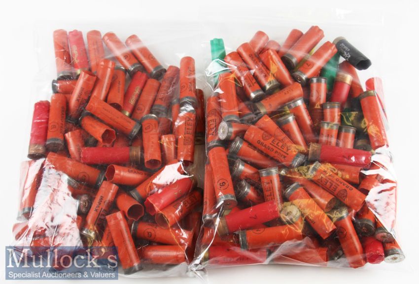 Selection of Empty 12 Gauge Shotgun Cartridges/Cases in plastic^ most if not all with Eley primers to bottom^ Shotgun shells^ ready to use (#110)