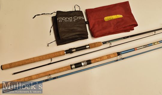 ABU Garcia Diamon Crest 8ft Spinning Rod 12-32gr 2 piece^ in good clean condition with maker’s bag^ plus ABU Atlantic 182 8.5ft 2 piece rod with maker’s cloth bag and ABU Atlantic 403 Zoom 9ft spinning rod with bag^ all generally clean with signs of little or light use overall (3)