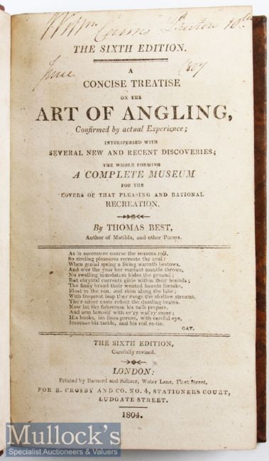 Best^ Thomas – Concise Treatise on the Art of Angling^ London 1804^ 6th edition^ frontis plate^ original full calf binding.
