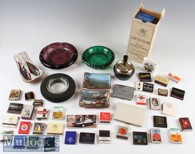 Selection of Smoking Accessories to include Ash Trays^ Cigarette cases^ pipe holder^ 2x lighters^ plus a selection of Match Boxes such as BOAC^ Capstan^ Escort Virginia^ and many more (Qty) Small Box