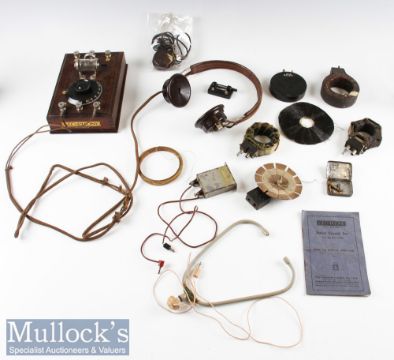 Gecophone Junior Crystal Set BC1700 a mahogany case with Gecophone and BBC logo printed on the sides^ with original handbook and headphones^ spare crystals^ six aerials extra headphones etc. Small Box