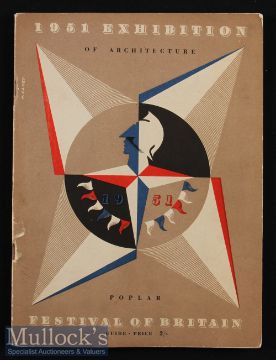 Festival of Britain - Exhibition Of Architecture At Poplar. London 1951 Official Catalogue - an attractive 52 page well illustrated official catalogue with several interesting articles. Plus 48 pages of period pictorial advertising. Printed on fine gloss paper in card cover with graphic illustration of the Festival Logo on front cover^ size 7" × 9½".