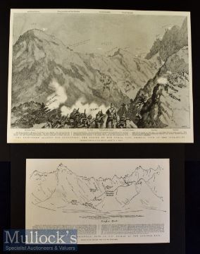 India & Punjab - The Expedition Against the Bunerwals: The Taking of the Tanga Pass: General View of Operations original illustrations after W T Maud (War Artist for Graphic) published 1898 which shows 20th Punjab Inf^ Highland Inf^ 21st Punjab Inf and West Kents storming the pass^ measures 32x24cm laid to card^ along with a diagram of the same action 24x14cm (2)