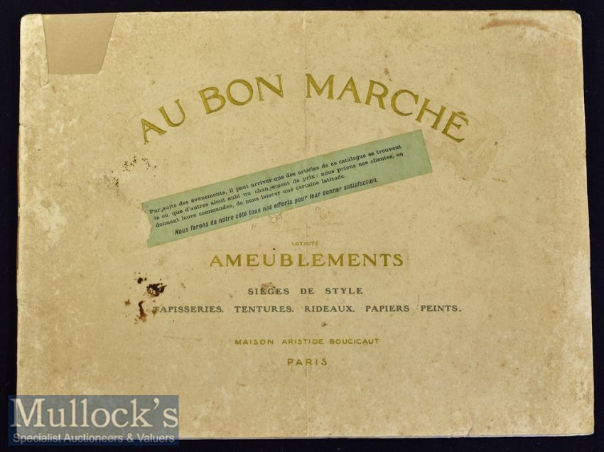Bon Marche (leading Store in Paris^ still exists)^ 1914 Furniture Catalogue A most attractive 40 page furniture catalogue showing each item of furniture with description and price. Also has 9 beautiful room settings exhibiting their furniture to best effect. Printed of finest semi-gloss paper in card cover^ size 12½" × 9½".