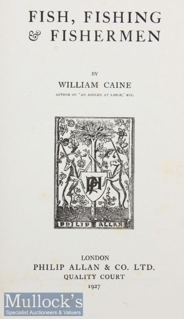 Caine^ William – Fish^ Fishing and Fishermen^ London 1927 1st edition^ frontis plate^ in good condition with original green cloth binding.