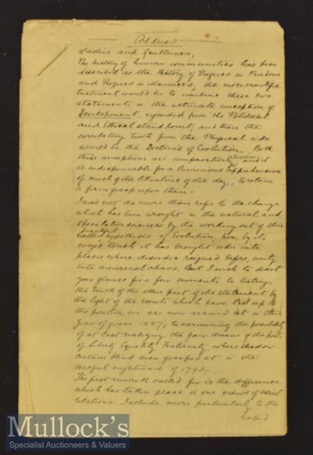 1887 Ernest Little Manuscript 'Address Read to the Members & Friends of The South African College On The Occasion of the Jubilee Celebration 1887' Cape Town^ lightly aged with few tears. The address given at the Jubilee of Queen Victoria at South African College^ which is now the University of Cape Town.