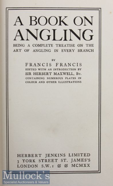 Francis Francis – A Book on Angling^ 1920^ with coloured plates of salmon flies with other illustrations^ in original green cloth binding.