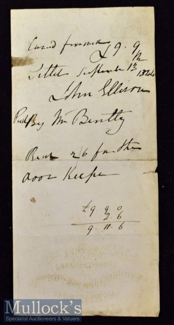 Coaching Inn Printed Bill - Devonshire Arms & Posting Inn^ Keighley 1844 Printed bill with manuscript annotations for travel to Bradford and various drinks^ size 4" x 8¼".