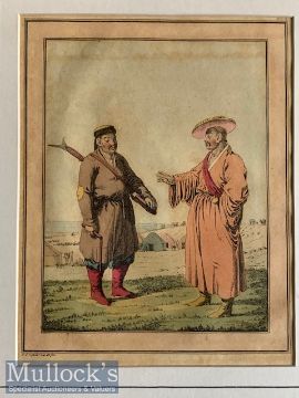 Selection of Asian Aquatints – coloured various scenes mounted measures 25x36cm overall (5)