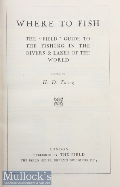 Turing^ H D – Where to Fish^ c1931^ published by the Field^ containing coloured plates of flies with large folding map and adverts^ in original red cloth binding.