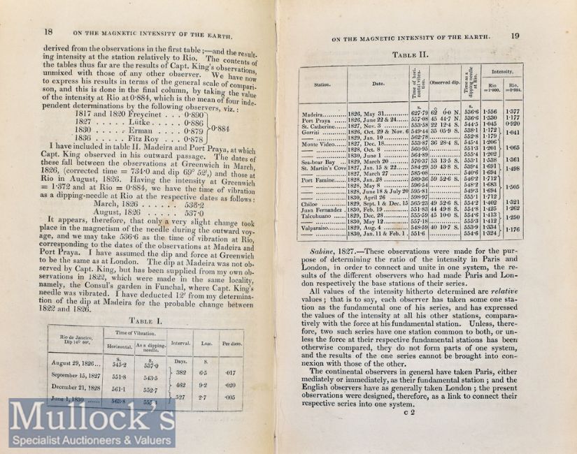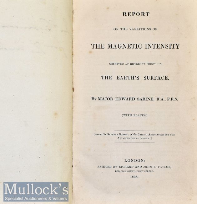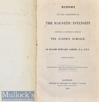 Science – Signed Presentation copy ‘Report on the Variations of The Magnetic Intensity observed at different points of the Earth’s Surface’ 1838 by Major Edward Sabine, published London inscribed ‘Mr Robinson from the Author’, errata with table and 2x plates and three fold out charts to rear, green cloth, slight foxing to end papers, Sabine was an Irish Astronomer, explorer, soldier and 30th President of the Royal Society