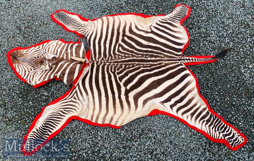 Vintage Taxidermy African Burchell Zebra Skin Rug laid on felt
