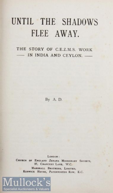 India – Punjab Books – On the Edge of the World by E Candler Cassell & Co ltd 1919 photo illustrations Candler was a special correspondent who lived in India and this record his travels in Kashmir and journey to Mesopatonia during WWI together with George Maxwell Gordon – The Pilgrim Missionary of the Punjab by A Lewis London 1890, 12 illustrations, fold in map of the Punjab to rear. Gordon became an honorary chaplain to the army in the Afghan campaign in 1878 and marched to Kandahar with the troops and received a fatal bullet wound in attending the wounded men and Until the Shadows Fly Away by A D c1912 the work of the C.E.Z.M woman’s charity mission in India and Ceylon, with chapters on religions of India, condition of women, folk-lore etc, covers marked to back (3)