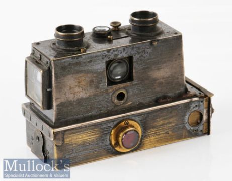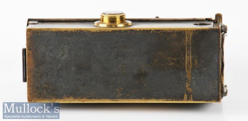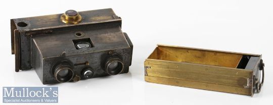 c1890 Negretti & Zambra, London Brass Verascope Camera marked 8561 to reverse with solid brass magazine for plates that measure 4” x 1.75” appears with age related wear