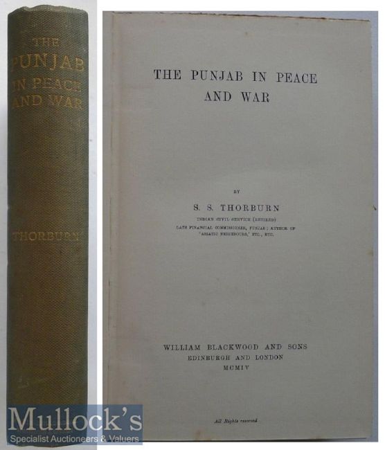 India & Punjab – Punjab In Peace & War Book A first edition of Punjab in peace and War, by S S Thornburn, 1904, in original blue cloth with theatre of war in the Sutlej plan for Sikh war battles of Aliwal, Sobraon, Chillianwala, Gujerat, and a map of the Punjab.