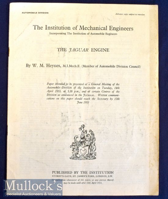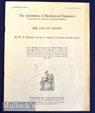 The Jaguar Engine Publication 1953 The Institution of Mechanical Engineers with information and diagrams, appears in A/G condition overall