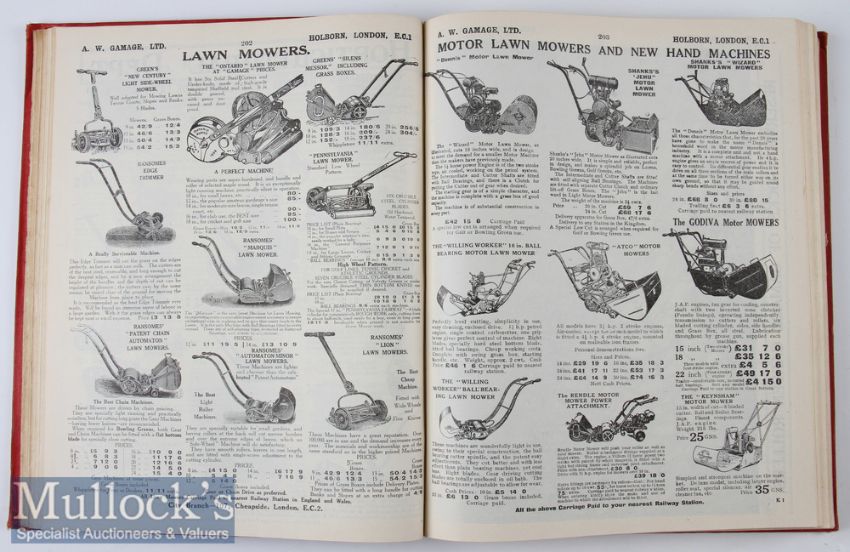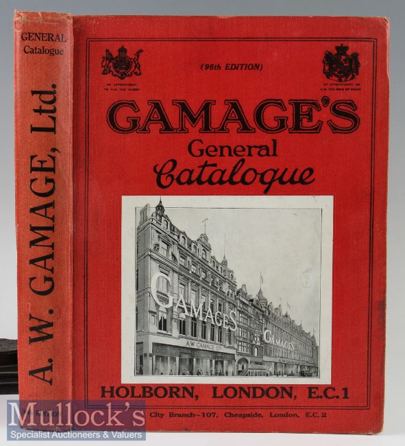 Gamage’s General Catalogue, Holborn, London 1926 A very large extensive 786 page mostly Furniture Ladies, Children’s, and Men’s fashionable clothing. Plus also some Household goods, Silver plate, Kitchen ware, Cycles, Sewing Machines, Stationary, large selection of Toys, etc etc. All illustrated with details & prices. In cloth board cover, size 4½” × 7¼”.