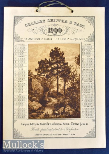 1900 Noted City of London Printer “Charles Skipper & East” Calendar Great Tower St. A 1900 calendar. Finely printed view of the Forest at Fontainbleau. Done on two cards so forest print can be removed afterward, kept or framed. Size 10½” × 12½”.