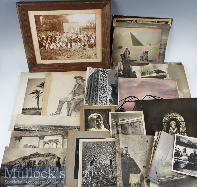 Selection of Black & White Photographs mostly of Egypt and Middle East incl pyramids, sphinx, Jerusalem and others, most appear to have hand written notes to rear with some having WW2 period dates, mixed conditions with some hand coloured plus laid on card (#25)